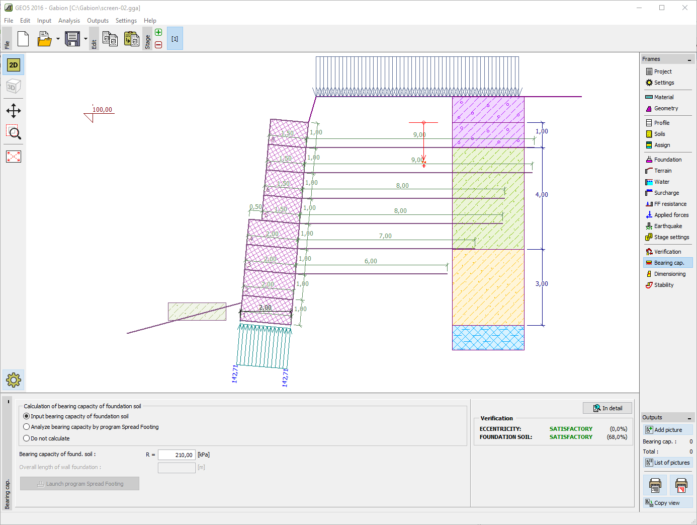 Program se koristi za provjeru dizajna zidova građena od žičani košara popunjenih s stijeno (gabiona). To omogućava analizu proizvoljnog oblika, uključujući prevjes i koji zahtijevaju sidrenje.
