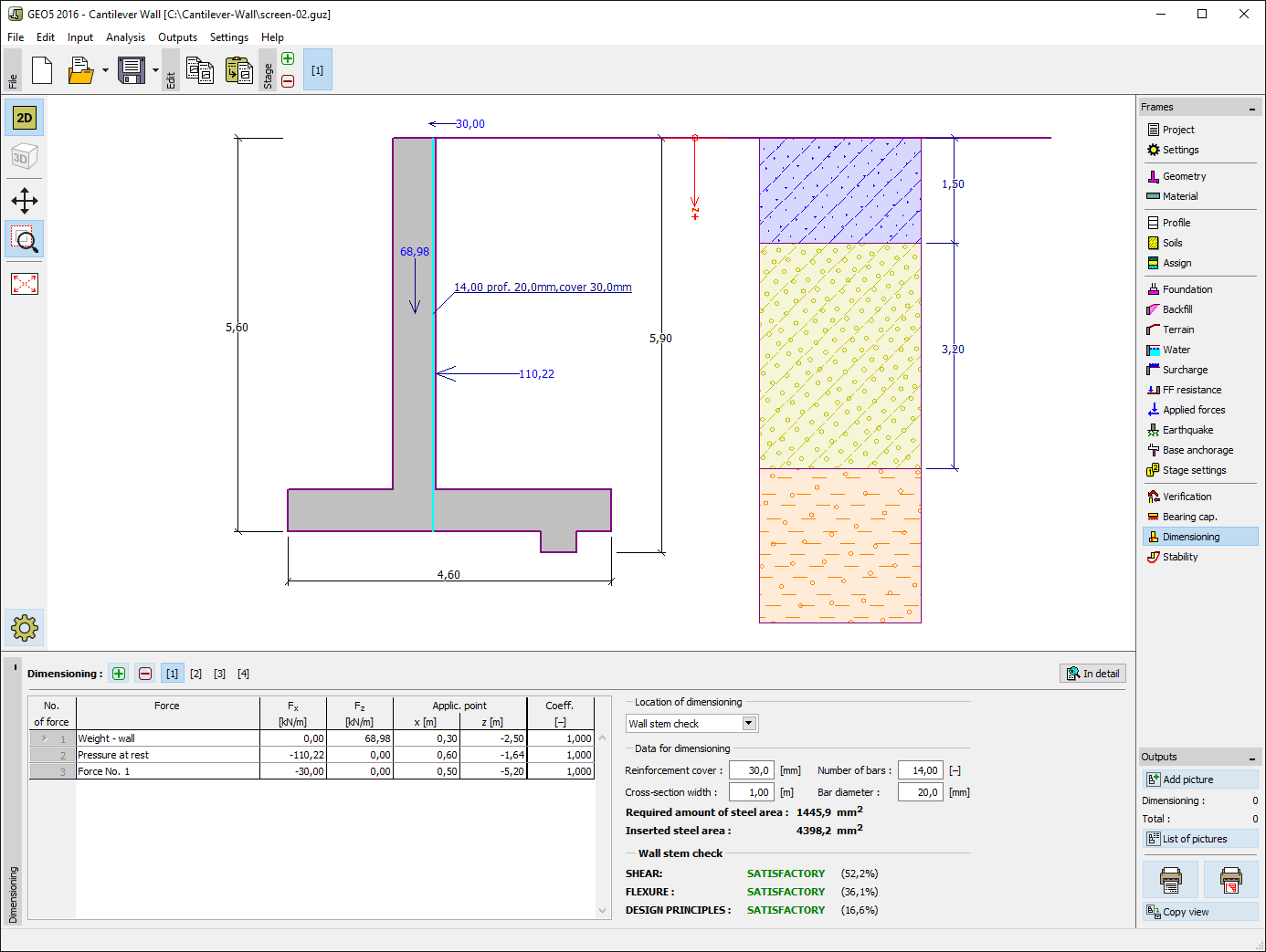 • Unutarnja analiza stabilnosti (prevrtanje, nosivost opterećenja temeljnog tla)